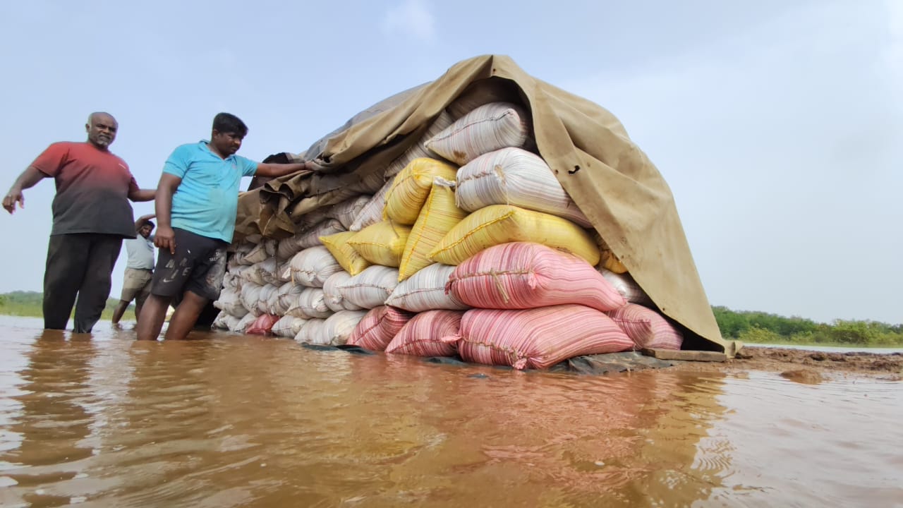 அத்தோடு இவ்வாறு எடுத்துச்செல்ல முடியாதநிலையில் 15நாட்கள்வரையில் அங்கு நெல்மூட்டைகள் அடுக்கிவைக்கப்பட்டுள்ள நிலையில் அண்மையில் பெய்த மழையினால் ஏற்பட்ட வெள்ளத்தில் நெல்மூட்டைகள் மூழ்கிப்பாதிப்படைந்துள்ளன.