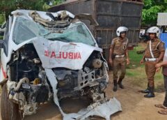மட்டக்களப்பில் மின்கம்பத்துடன் மோதிய நோயாளர் காவு வண்டி ; 2 பேர் படுகாயம்