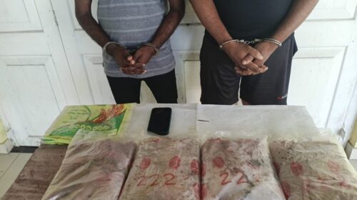அளுத்கம, பெந்தோட்டை பகுதியில் பொலிஸ் போதைப்பொருள் ஒழிப்புப் பிரிவினரால் மேற்கொள்ளப்பட்ட விசேட சுற்றிவளைப்பில் ஹெரோயின் போதைப்பொருளுடன் இரு சந்தேகநபர்கள் கைது செய்யப்பட்டுள்ளனர். நேற்று (31) அதிகாலை பொலிஸ் போதைப்பொருள் ஒழிப்புப் பிரிவினருக்கு கிடைத்த தகவலுக்கமைய முன்னெடுக்கப்பட்ட இந்த நடவடிக்கையில் 5.105 கிலோ கிராம் ஹெரோயின் போதைப்பொருள் மீட்கப்பட்டுள்ளது. இச்சம்பவம் தொடர்பாக பெந்தோட்டை பிரதேசத்தைச் சேர்ந்த 40 மற்றும் 45 வயதுடைய இருவர் கைது செய்யப்பட்டுள்ளனர்.இதன் தெரு மதிப்பு ரூ. 7 கோடிக்கும் அதிகமென தெரிவிக்கப்படுகின்றது.மேலதிக விசாரணைகளை பொலிஸ் போதைப்பொருள் ஒழிப்புப் பிரிவினர் முன்னெடுத்து வருகின்றனர்.