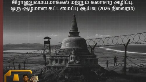தமிழர் தாயகத்தில் திட்டமிட்ட சிங்கள–பௌத்தமயமாக்கல் : ஒரு கட்டமைப்பு அரசியல் ⧉▬▬▬▬▬▬▬▬▬▬▬▬▬▬⧉ நில அபகரிப்பு, இராணுவமயமாக்கல் மற்றும் கலாசார அழிப்பு– ஒரு ஆழமான கட்டமைப்பு ஆய்வு (2026 நிலவரம்) அறிமுகம் : போருக்குப் பிந்தைய “புனரமைப்பு”யிலிருந்து கட்டமைப்பு சார்ந்த இன அழிப்புவரை 2009 ஆம் ஆண்டு ஆயுதப் போர் உத்தியோகபூர்வமாக முடிவடைந்ததிலிருந்து, தமிழர்களின் தாயகமாக வரலாற்று ரீதியாக அங்கீகரிக்கப்பட்ட இலங்கையின் வடக்கு மற்றும் கிழக்கு மாகாணங்கள் உண்மையான போருக்குப் பிந்தைய மீட்சி நிலைக்குள் நுழையவில்லை. மாறாக, அவை கணக்கிட்டு வடிவமைக்கப்பட்ட, நிறுவனமயமாக்கப்பட்ட ‘கட்டமைப்பு சார்ந்த இன அழிப்பு’ (Structural Genocide) என்ற நீண்டகால அரசியல் செயல்முறைக்குள் தள்ளப்பட்டுள்ளன. இந்த அழிப்பு முறை வெகுஜனக் கொலைகளைக் கொண்டதாக அல்ல. மாறாக, அது கீழ்க்காணும் வழிகளின் மூலம் மெதுவாகவும், ஆனால் உறுதியாகவும் செயல்படுகிறது: * தமிழர்களின் நில உரிமைகளை நிரந்தரமாகப்…